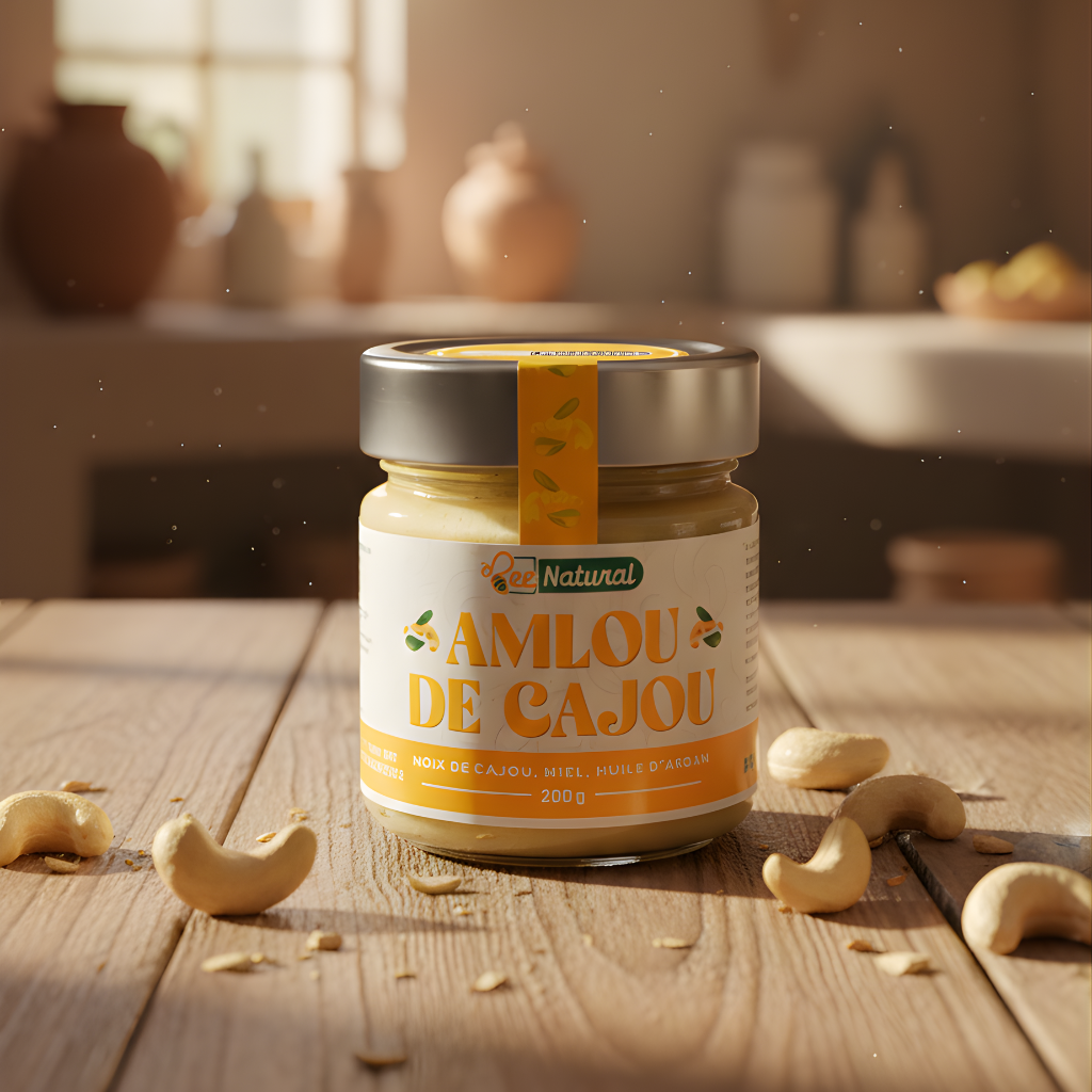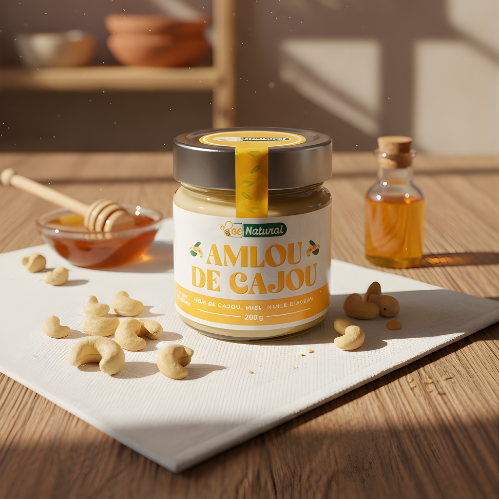 يُحضَّر من حبوب الكاجو المحمّصة بعناية، مع العسل الطبيعي وزيت الأركان
