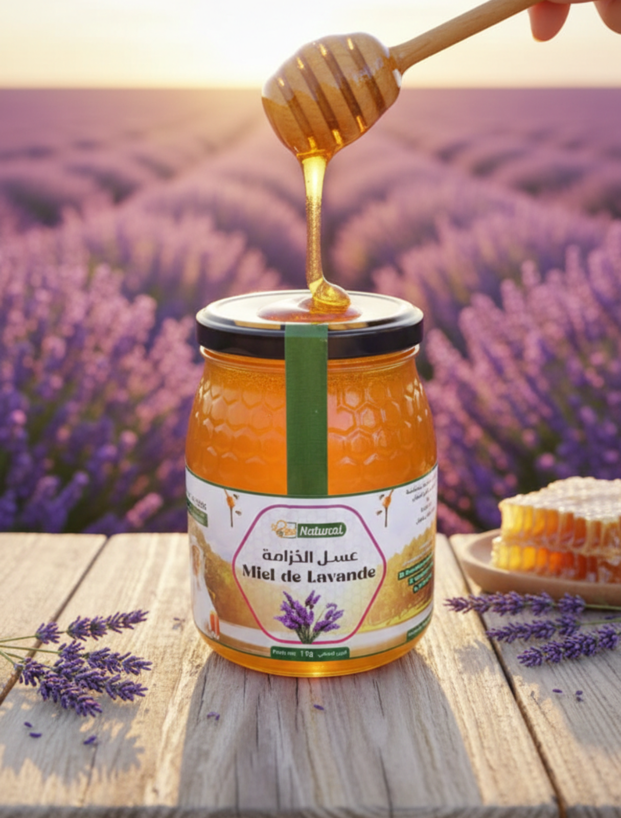 جمع هذا العسل من الهضاب المغربية، حيث تتمايل أزهار الخزامى مع نسمات الهواء النقي